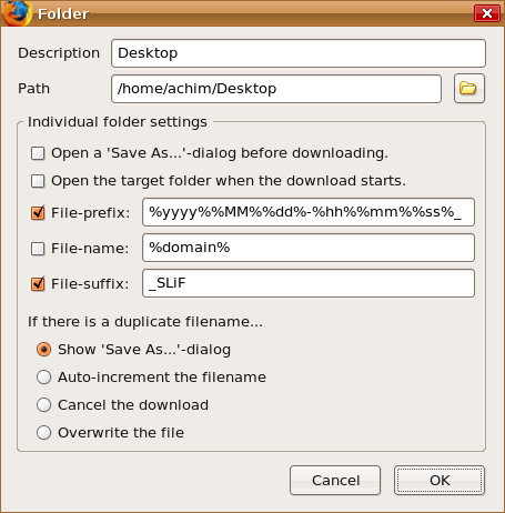 Save Image in Folder offers settings which are not reachable via GUI but Firefox's built-in "config-editor" (about:config).